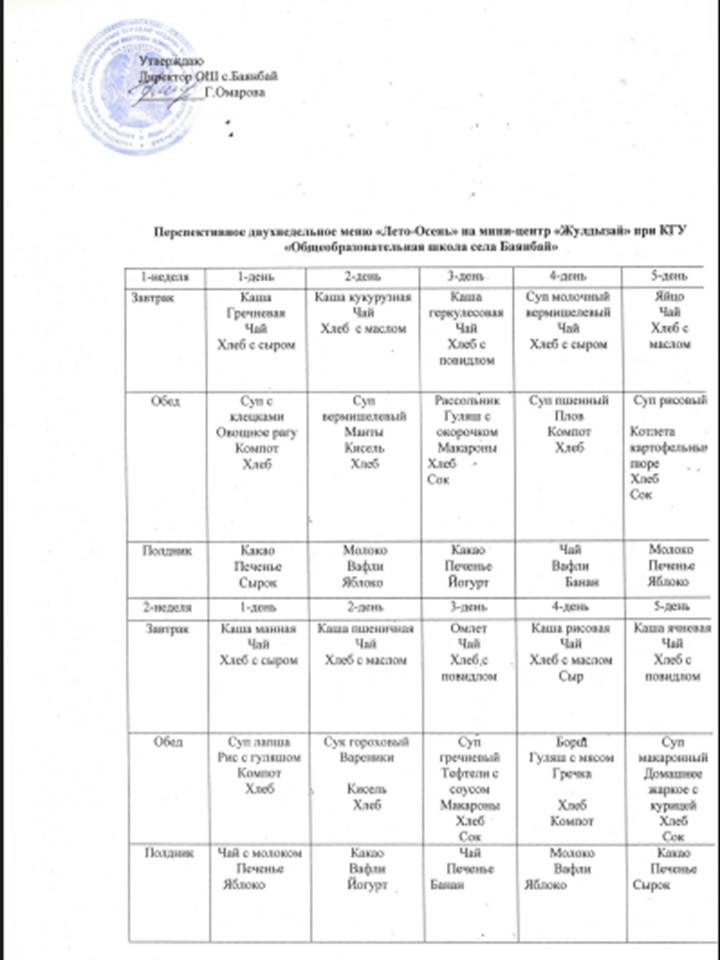 "Жұлдыз" шағын орталығына "Жаз-Күз" перспективалы екі апталық мәзір