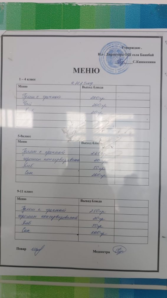 Мәзір « 04.11. 2024 ж» 5-11 сынып оқушылары үшін