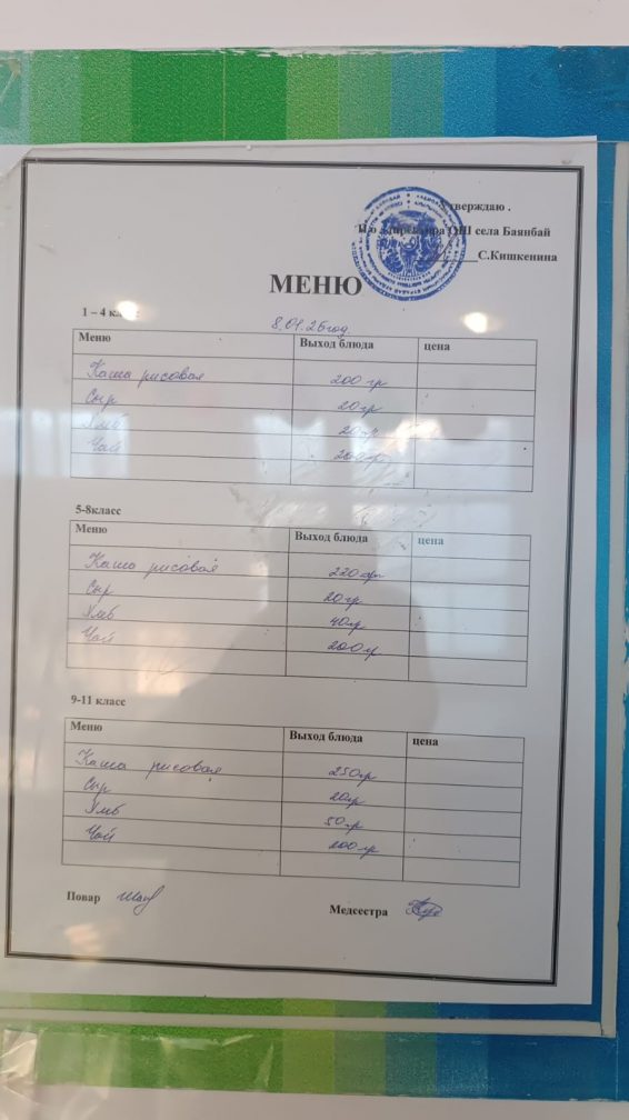 Мәзір « 08.01. 2026 ж» 1-4 сынып оқушылары үшін