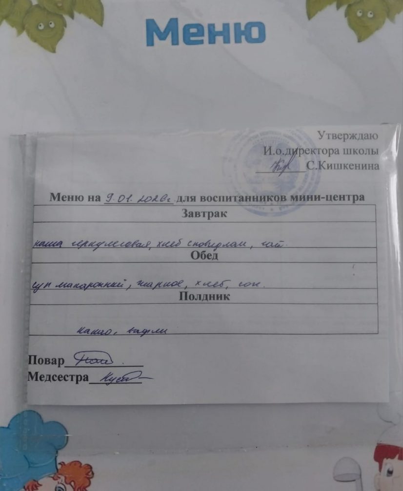 "Жұлдызай" шағын орталығының "09.01.2026 ж" мәзірі