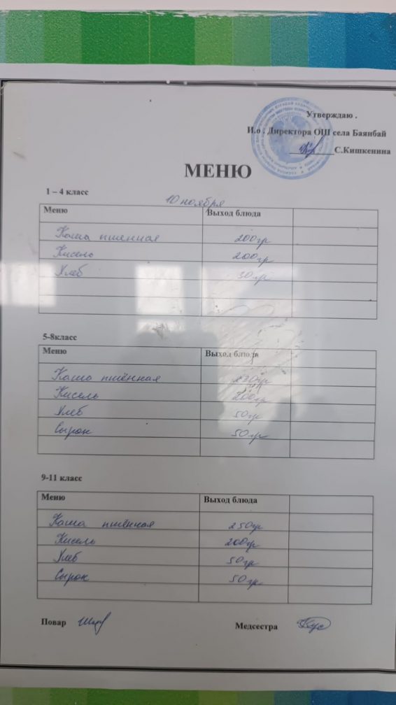 Мәзір « 10.11. 2024 ж» 1-11 сынып оқушылары үшін