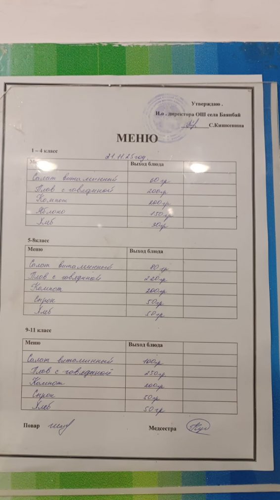 Мәзір « 21.11. 2024 ж» 1-4 сынып оқушылары үшін