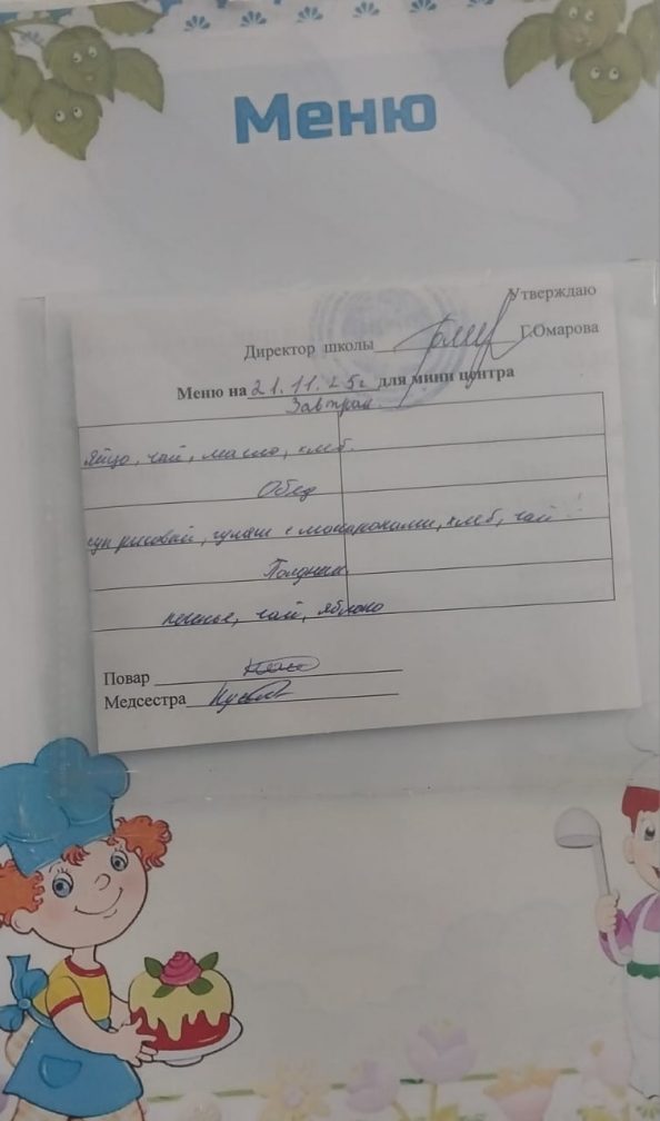"Жұлдызай" шағын орталығының "21.11.2025 ж" мәзірі