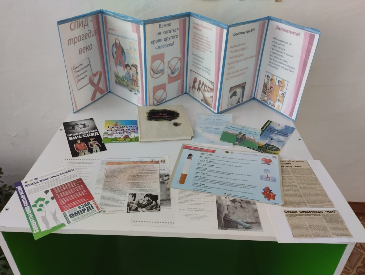 «АИТВ/ЖИТС – біл және өмір сүр!» кітап көрмесі. Жыл сайын 1 желтоқсанда атап өтілетін Дүниежүзілік ЖИТС-ке қарсы күрес күніне арналған. Кітапханашы: Долматова С.А.
