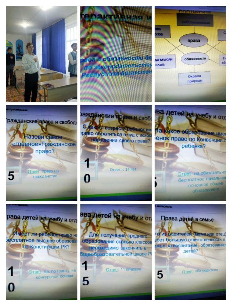 «Қазақстан Республикасының заңнамасындағы балалардың құқықтары мен міндеттері» атты интерактивті ойын өткізді.
