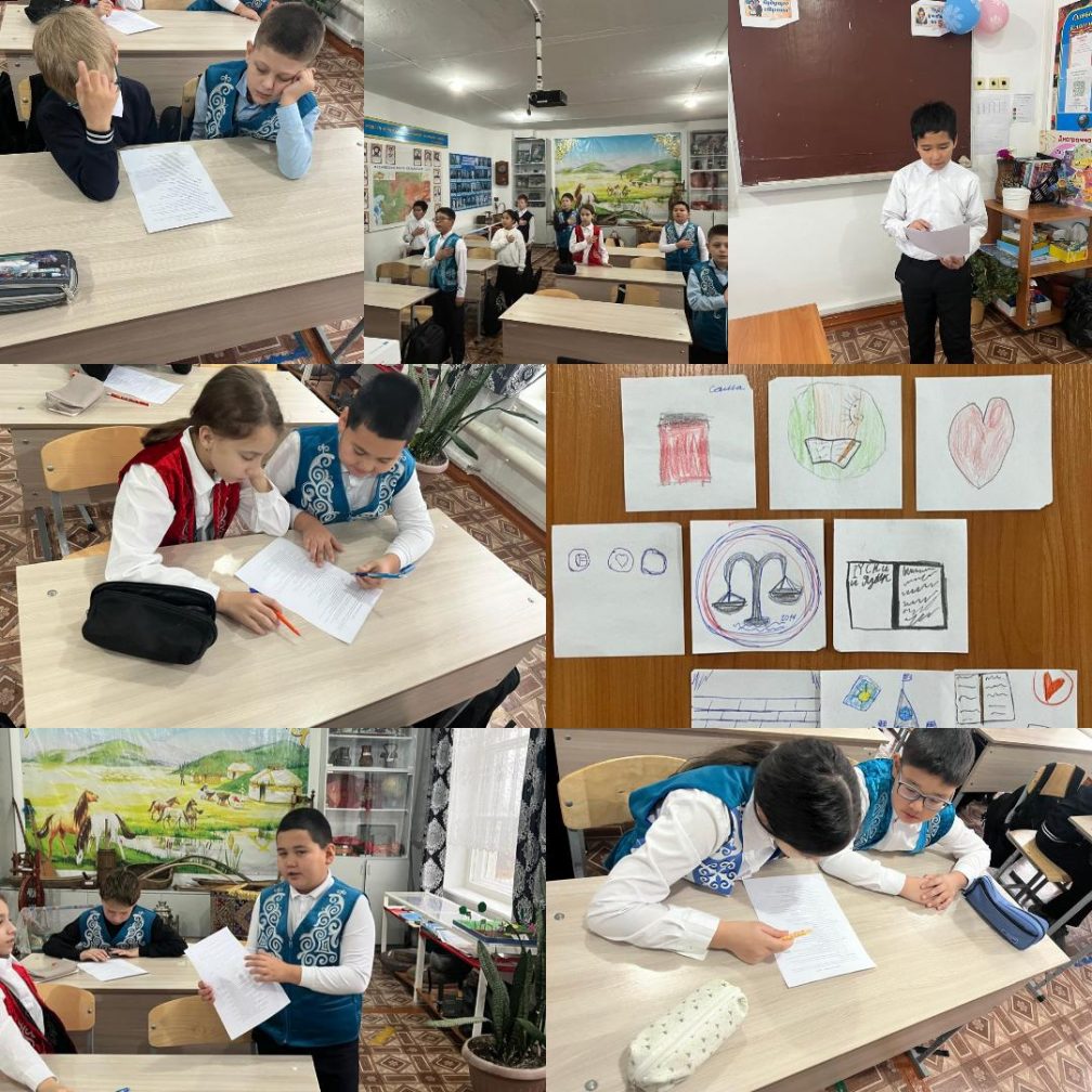 Бүгін сынып сағаты аясында 5-сынып оқушылары «Заң және менің құқығым» тақырыбында Бірыңғай интерактивті сабақ өткізді. Мақсаты: белсенді азаматтыққа, патриоттыққа тәрбиелеу. Сынып жетекшісі А.Т. Сүлейменова.