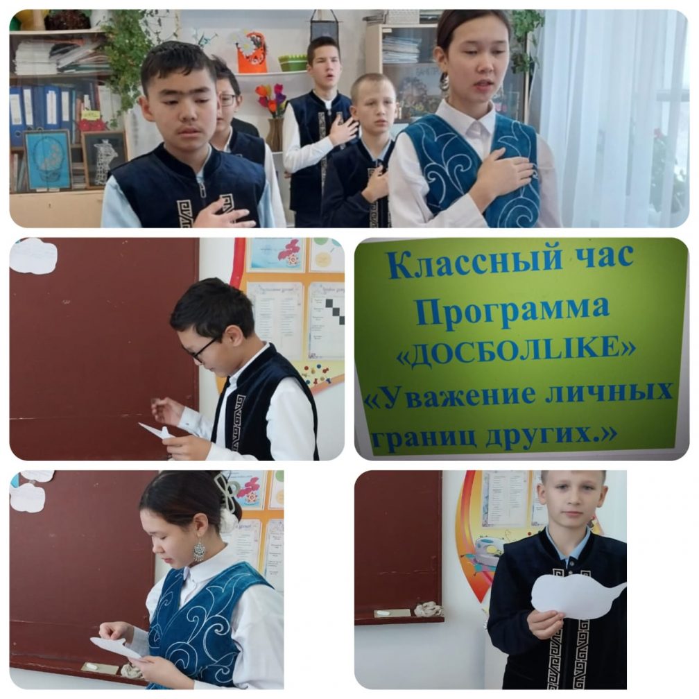 7-сыныпта «DOSBOLLIKE» бағдарламасы аясында «Жеке шекараны және басқаларды құрметтеу» атты сынып сағаты өтті. Мақсаты: Оқушыларды жеке шекара ұғымымен таныстыру және физикалық, эмоционалдық және психологиялық шекараларды ажырата білуге үйрету. Дайындаған: О.П.Дорогова, 7-сынып сынып жетекшісі